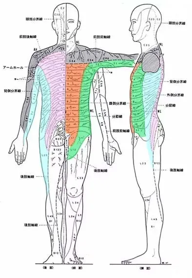 皮膚を支配する皮神経には境界線(皮節構造線)があります。
