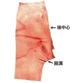 実際に皮膚を解剖した際に、殿溝部分にはしっかりとシワが入っています。このシワの分量がこの部分に必要な運動量です。実際にパーツを作成するときも、このように人体の皮膚を研究することで、人体の皮膚のどこに運動量を吸収するゆとりがあるかを知ることができます。