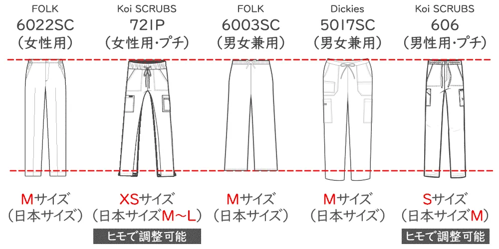 定番のアメリカンスクラブとKoiのスクラブでサイズ比較をいたしました。男女ともに人気のディッキーズシリーズのスクラブ(男女兼用)は日本サイズで作られており、7033SCスクラブは、7000SCスクラブと同様のサイズスペックとなっております。