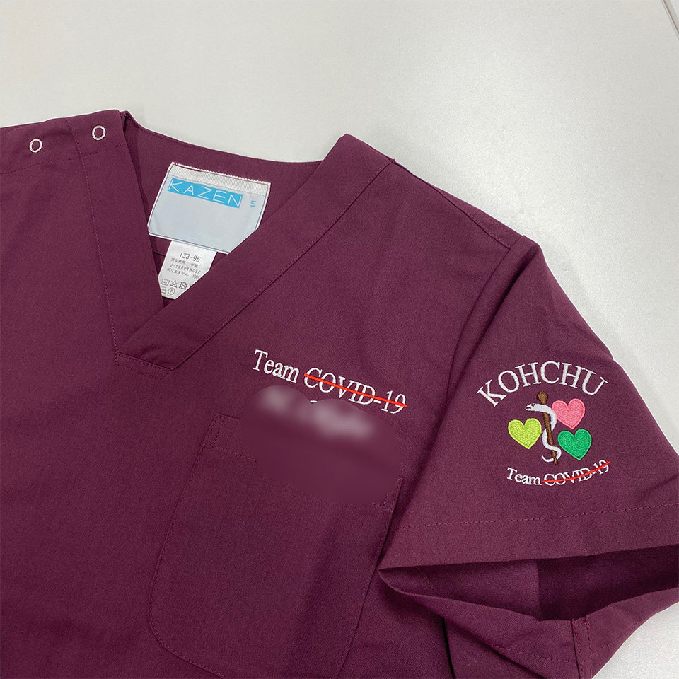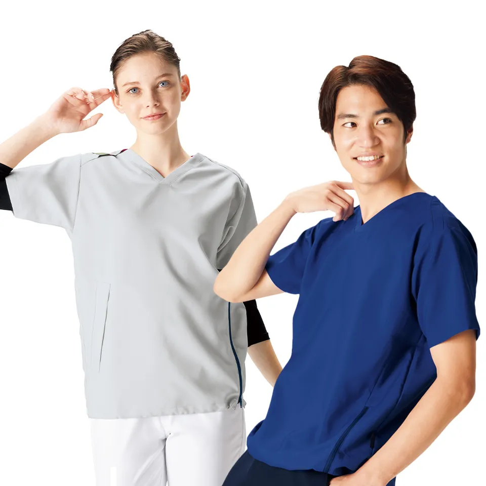 羽織るタイプなので着脱しやすくメイクなどが付きにくい、ナースにもおすすめのスクラブ。
