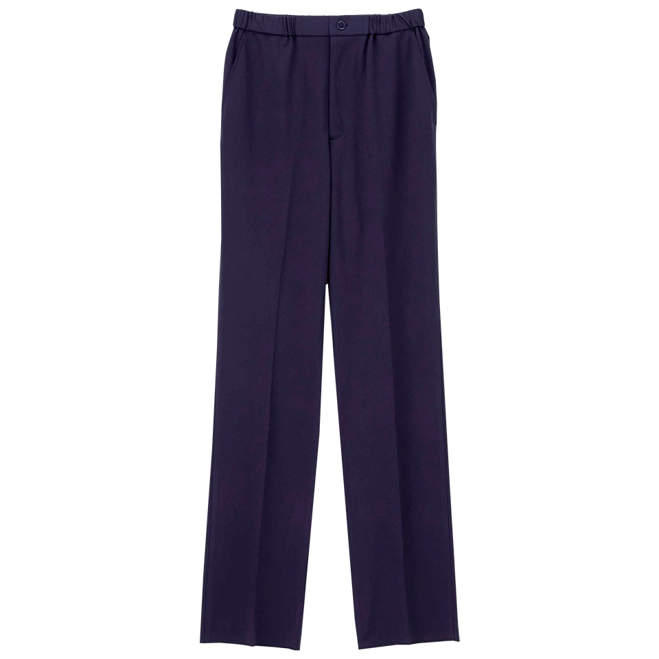 ウエスト総ゴムの男女兼用のストレートパンツです。涼しく優れたストレッチ性を持つ素材が快適な履き心地。