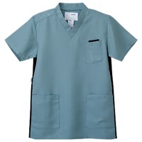 脇切り替えラインで、前面がスマートなシルエットのスクラブ。