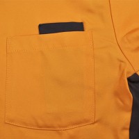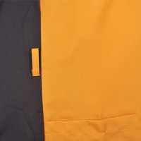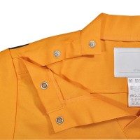 PHS用ポケット付き。後ろ側に立つようにできた衿ぐりは、ネームプレートのストラップが首につかないための配慮です。