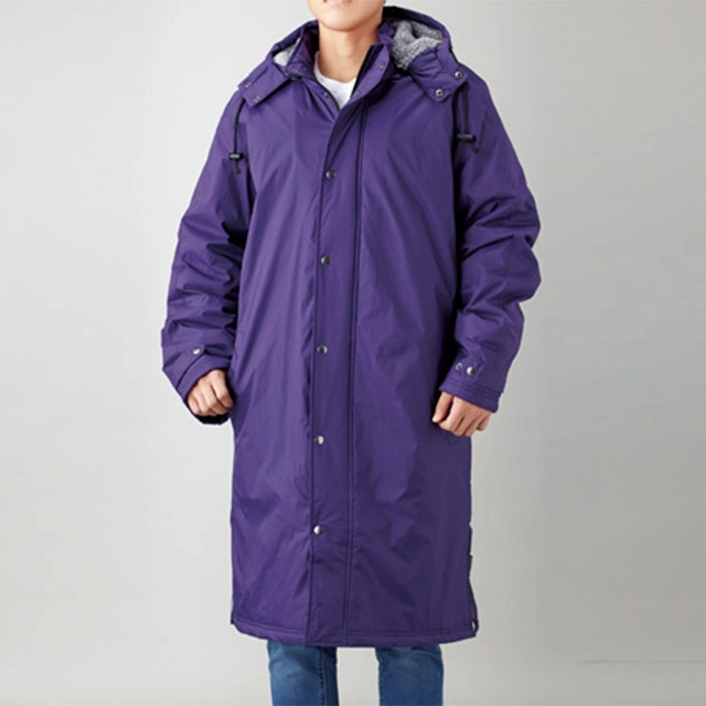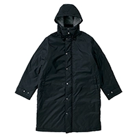 脱着式フードや調整可能なスリットを備えた冬場のさまざまなシーンで活躍するベンチコートです。