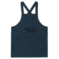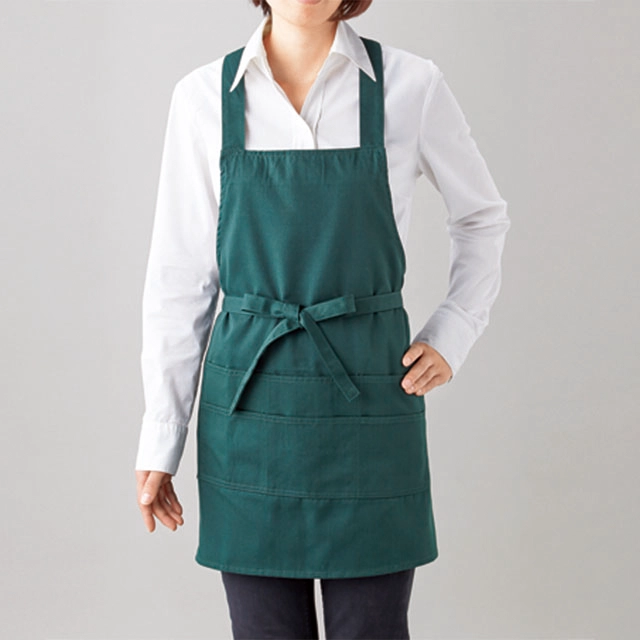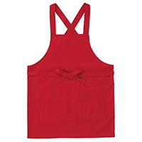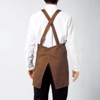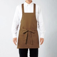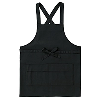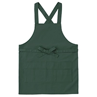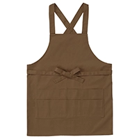 ヒモをフロントで縛るたすき掛けタイプの胸当てエプロン。丈夫なツイル生地仕様で飲食店やガーデニング用に最適です。