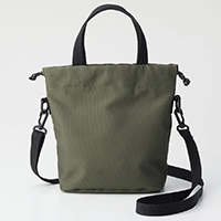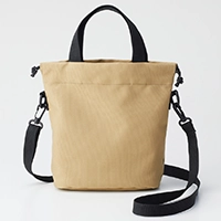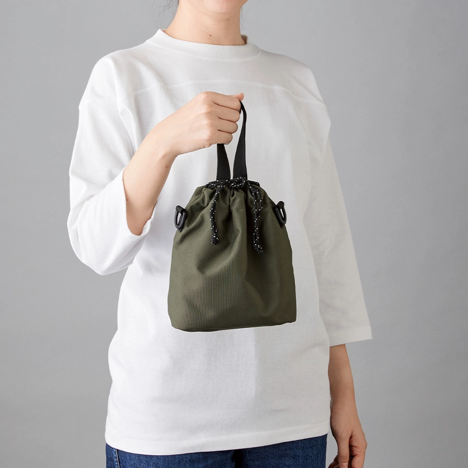 ショルダーストラップを使えば肩掛けのバッグ、袋口を絞れば巾着と2種類の使い方ができます。