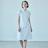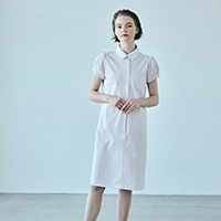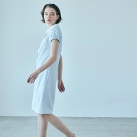 ストレッチのあるトリコット素材を使ったクレリックワンピース。