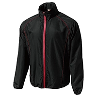 ファスナーとパイピング色がカラフルなので、シンプルすぎず、スタイリッシュ!ジャケットの襟にはフード収納ポケット付き。