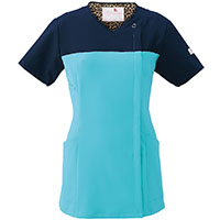 胸元に濃いカラーをあしらい、気になる汚れを目立たなくしているので、心地よく働けます。