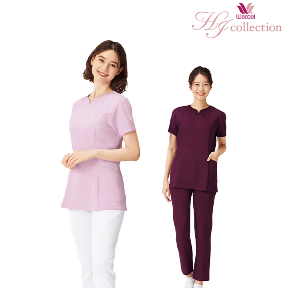 襟元デザインが顔周りをシャープにみせるレディススクラブ