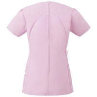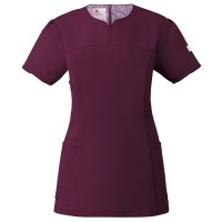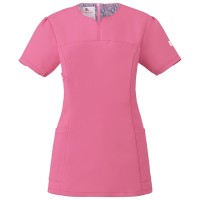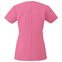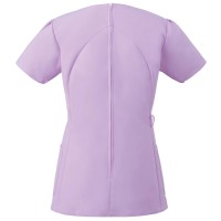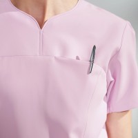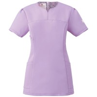 襟元デザインが顔周りをシャープにみせるレディススクラブ。