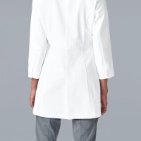 すっきりスマートなフォルムの診察衣はバックスタイルにもはっきり違いが出ます。ウエストベルトの位置を高くしたAラインで仕上げているので、よりスリムなイメージ。後ろ姿まで美しい印象に。