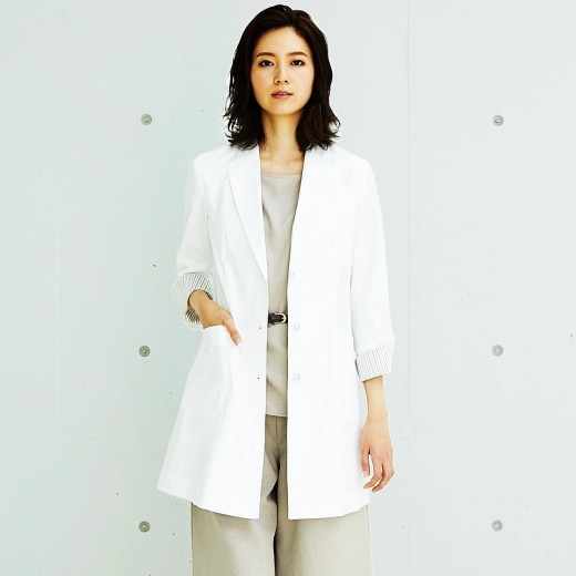 美脚効果のある丈感とすっきりスマートな印象。美シルエットの極みのレディス診察衣です。