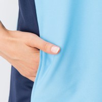 脇の配色切り替えがアクセント。着やせ効果もあり。安全性に配慮したボタンのないデザインです。