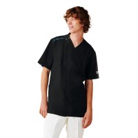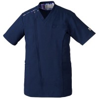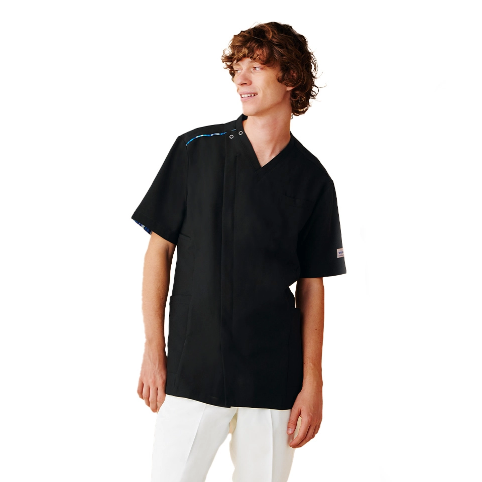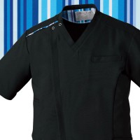 凛々しいBODYシルエットにストライプのパイピング。時代のニーズをとらえた着脱しやすいファスナータイプのスクラブ。