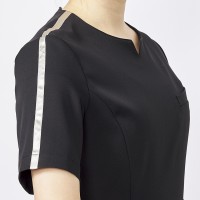 細身のシルエットと肩から袖口までのラインデザインがスタイリッシュな印象のチュニック。