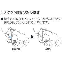 かがんだときに胸元や腰回りが見えないエチケット機能をプラス。