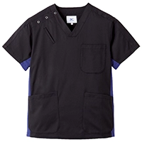 吸汗速乾・防臭抗菌・制電機能に右胸PHSポケット・両脇ポケット、右後ろにもポケットがついた高機能スクラブ。