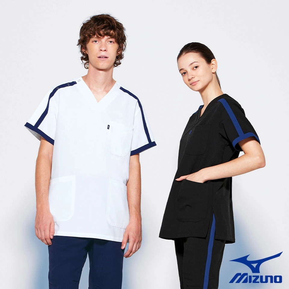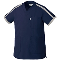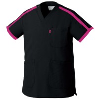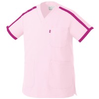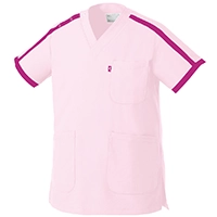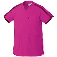 鮮やかな色から落ち着いた色もあり、カラー豊富な10色展開。襟元と袖のパイピングがアクセントのスクラブ。