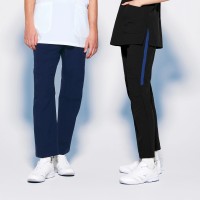 ストレッチが効いてスムーズに動けるスクラブパンツ。膝のダーツが膝の動きをサポート!