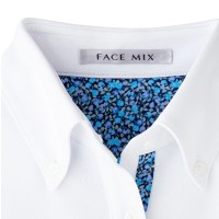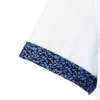 仕様:ボタンダウン/両脇裾スリット入り(内側花柄トリミング)/左胸アウトポケット/前立て下側/袖口内側/ヨーク内側に花柄使用