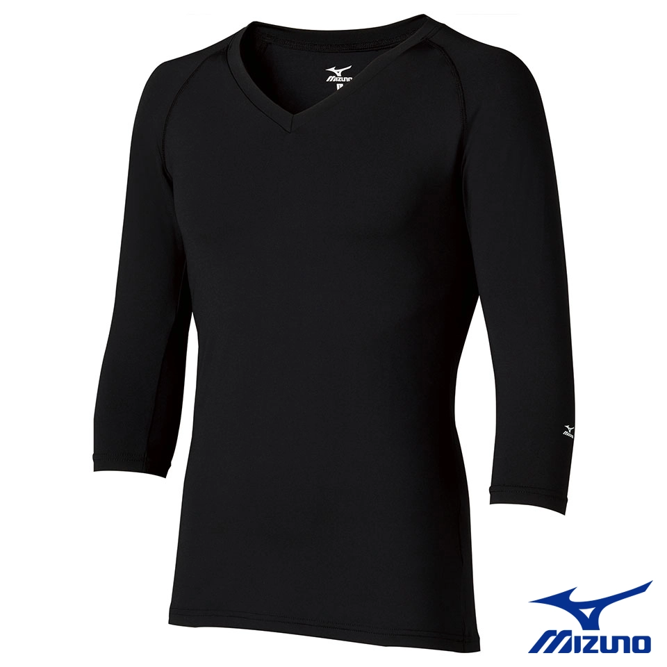 スクラブの襟元から見えることなく着用ができるVネックタイプ。袖にはMIZUNOロゴピスネーム付き。