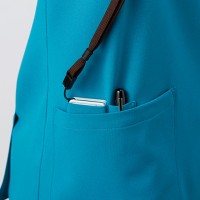 カラーは明るいものから落ち着いた色味の全11色展開。襟部分と両袖にパイピングが入っているため、引き締まったイメージのおしゃれなアクセントになっています。また、ストレッチ性もあるため、動きやすい!制電、消臭効果もあり。右ポケットに中ポケットがあり、PHSポケット・ペン差しが可能で収納に大変便利です。