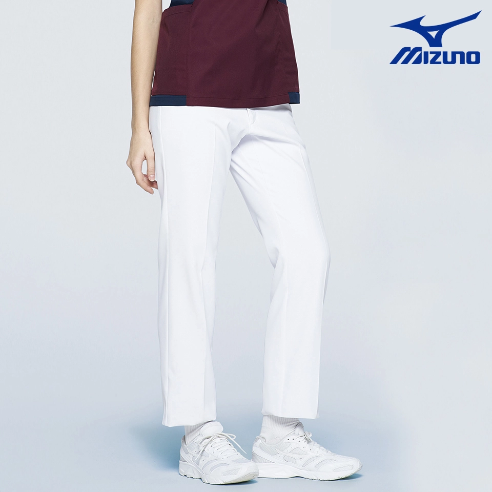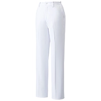 繰り返し洗濯しても型崩れしにくい工業洗濯可能なストレッチ性のあるレディスパンツ。