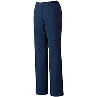 スクラブやジャケットに合わせやすいネイビーカラーのレディスストレッチパンツ。