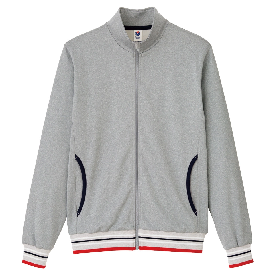 ケアスタッフの声で商品化したストレッチ性・吸汗速乾性があり、リブラインがおしゃれなトレーニングジャケット。