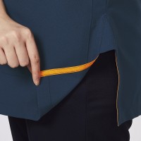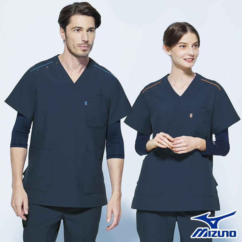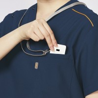 制菌加工でいつも清潔。肩のパイピングがポイントの男女兼用スクラブ