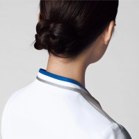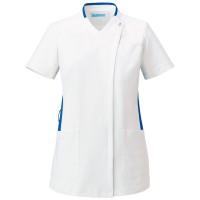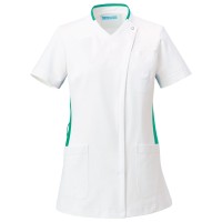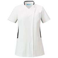 工業洗濯が可能で汚れがつきにくい生地を使用しているためお手入れも簡単。デザインと機能性を両立したレディススクラブ。
