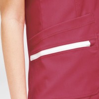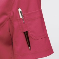 両腰二重ポケット(大容量)・右腰ポケット(ファスナー仕様)・左胸ポケット(左袖ポケットにペン差し用ループ付)・背中アクションプリーツ