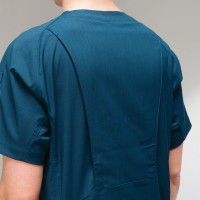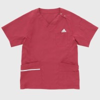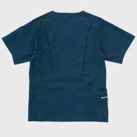 左袖にポケットとペン差し用ループ付き。右腰は大切な物の収納に便利なファスナー仕様。レディススクラブSMS008とペアデザインとなっています。