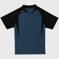 ボディ部分に吸汗速乾性のある素材、袖にはストレッチ素材を使用。体の動きをサポートし、ハードな洗濯にも対応可能。体を動かす事が多い医療現場におすすめのスクラブです。