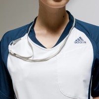 スポーツウェアならではのデザイン・機能性の両面をもつ躍動感あふれるアディダスの男女兼用スクラブ。