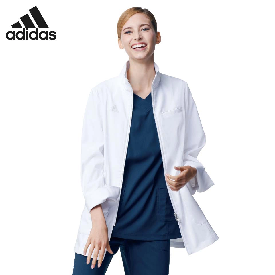 驚きの軽さ!右胸にアディダスのロゴが入ったスタンドカラーのドクターコート。