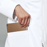 両腰ポケットにはタブレットも収納可能な大容量ポケットがあり、聴診器もすっぽり入ります。収納に大変便利です。