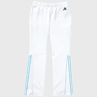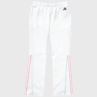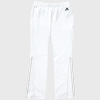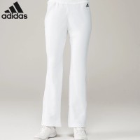 女性らしいすっきりシルエット。左前にアディダスのロゴ入りレディスパンツ。