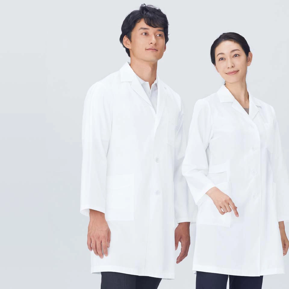 カラーはオフホワイト、サックス、ミントグリーンの3色。医療分野のみならず、幅広い分野で着用されています。