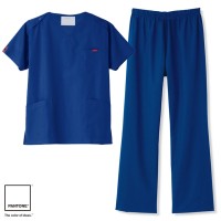 仕様:スクラブ(左胸ポケット/両腰ポケット)、パンツ(総ゴム/後ろポケット付き/ウエストひも入り)