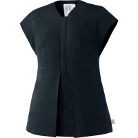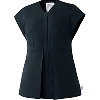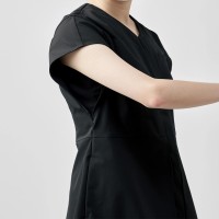 動きやすく美しいボックスプリーツ仕様!高めの位置でシェイプしたウエストとVネックの効果で、すっきり美しい印象に。