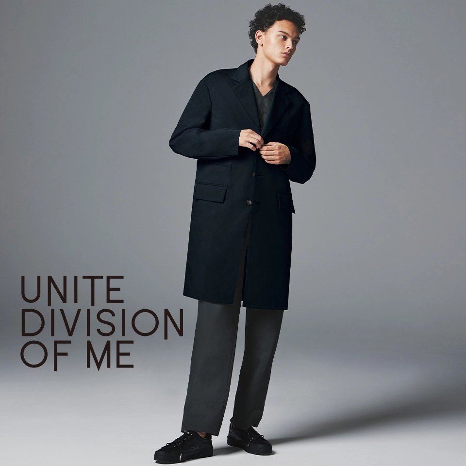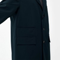 窮屈さを感じさせない落とした肩のラインがスマートさを印象付けるドクターコート
