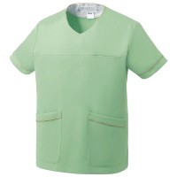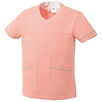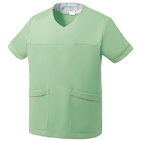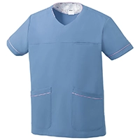 やわらかいカラーに上品なパイピングのアクセントが効いた男女兼用スクラブ