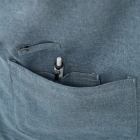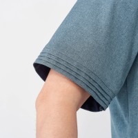 ほどよいストレッチ性と杢調の上質感。襟元のラインと袖口のピンタックがアクセント