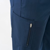 右脇に便利なファスナーカーゴポケット付き。コーディネートしやすい無地のパンツ