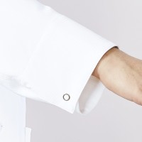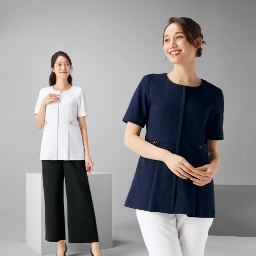 カジュアルなシルエットの男女兼用半袖ドクターコート。