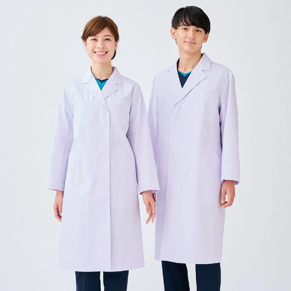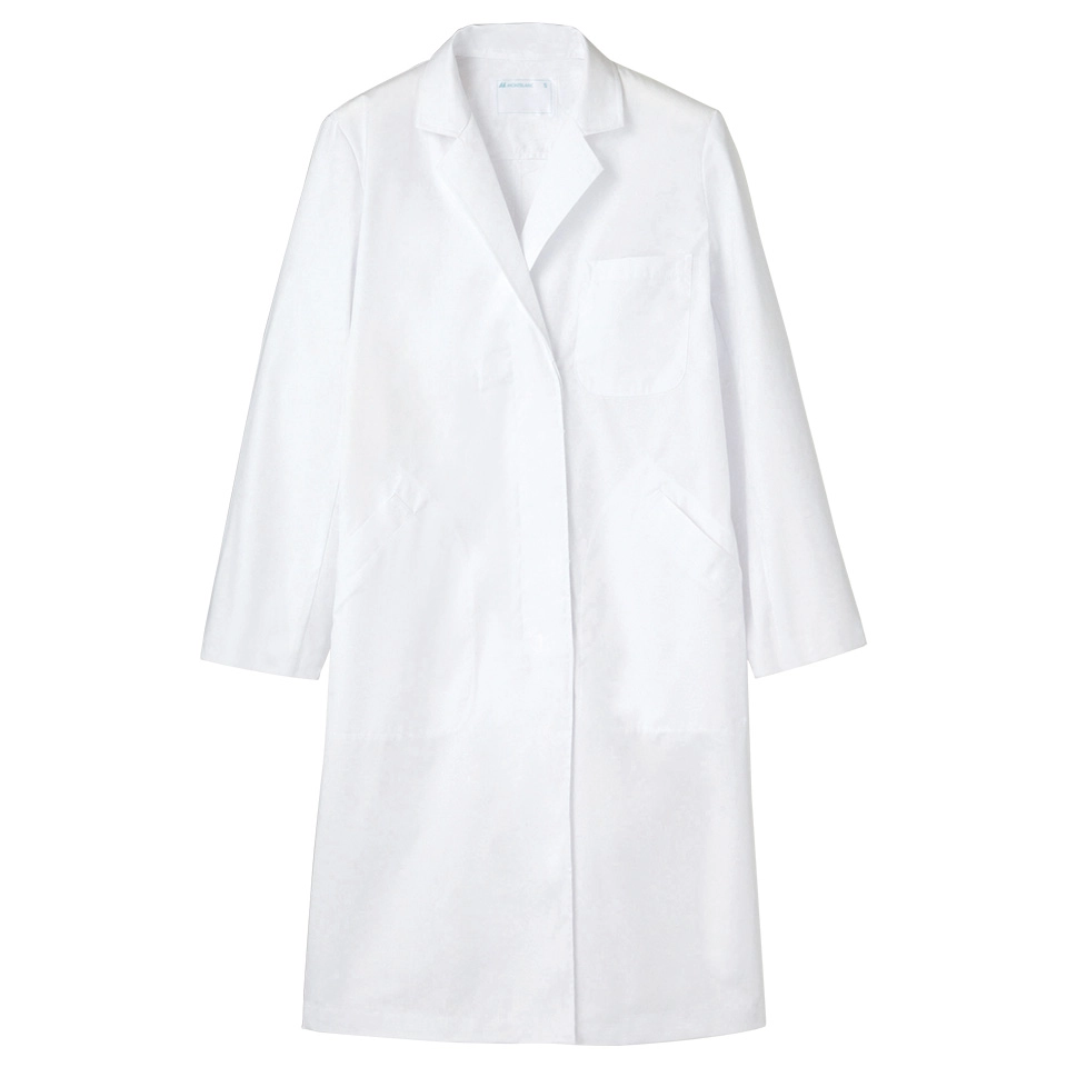 薄手でしなやかなポプリン素材を使用したシングルタイプのレディス長袖ドクターコート。