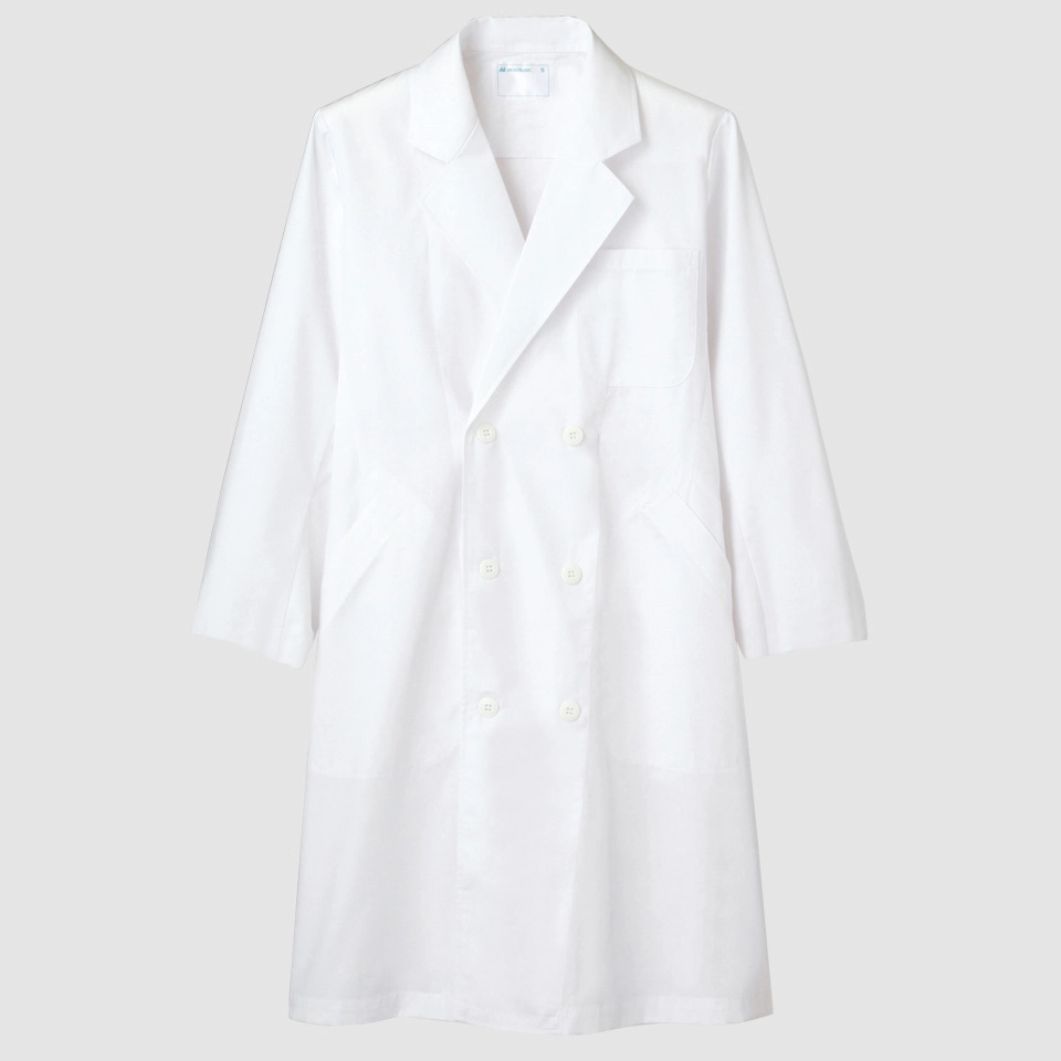 薄手でしなやかなポプリン素材を使用したダブルタイプのメンズ長袖ドクターコート