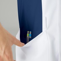 左脇下には、PHSを収納可能なポケット付きで、右裾ポケットの内側には筆記用具等を整理して収納可能な小ポケット付き。